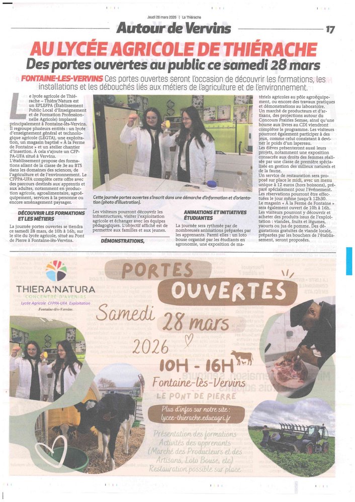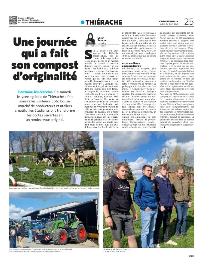 Article de presse paru le jeudi 26 mars au sein du journal La Thiérache.