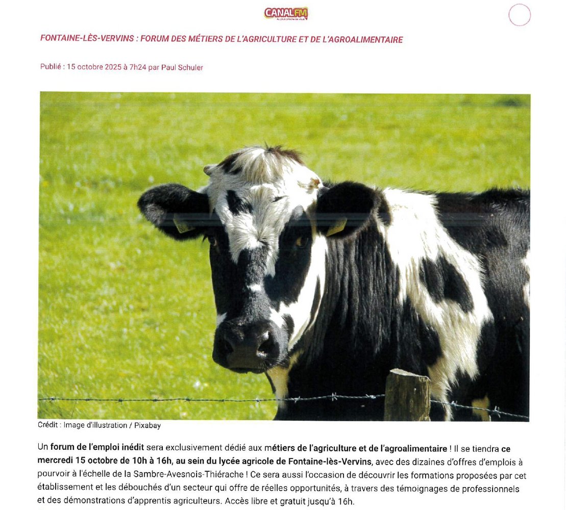 Article de presse paru le mercredi 15 octobre sur le site web de Canal FM.