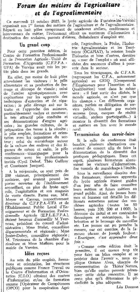 Article de presse paru le jeudi 27 février 2025 au sein du journal La Thiérache.