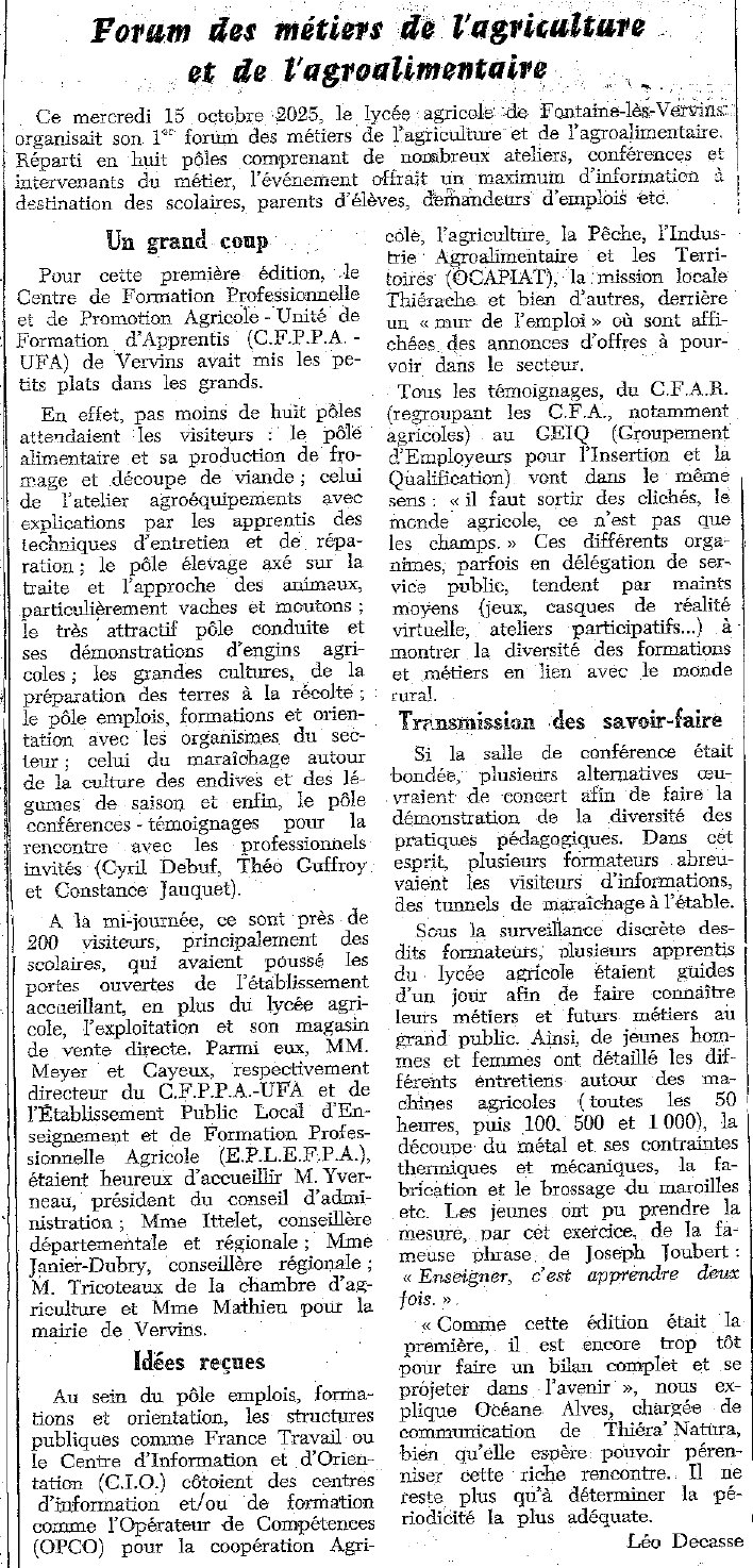 Article de presse paru le jeudi 7 août 2025 au sein du journal La Thiérache.