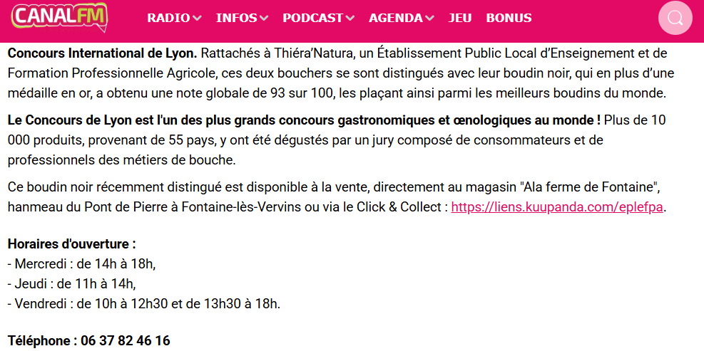 Article de presse paru le mardi 16 décembre sur le site web de Canal FM.